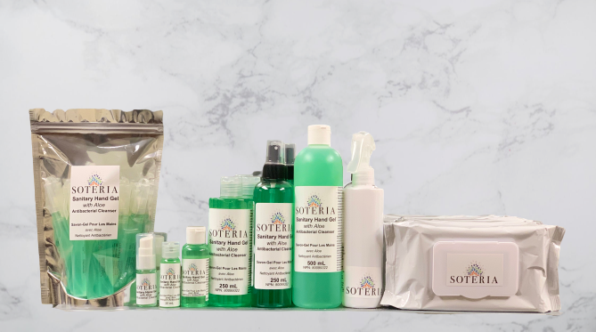 SOTERIA Sanitary Hand Gel Spray 70% Alcohol 50mL x 4 with hook keychain